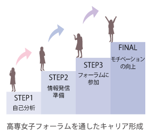 高専女子フォーラムでは、4つのステップで女子学生に対するキャリア教育を実施しています。