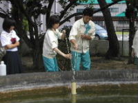 | H16.8.4 オープンキャンパスで水質分析 研究室学生が先生となり水質分析を体験するオープンキャンパスです。[5C小野田、森田] |