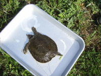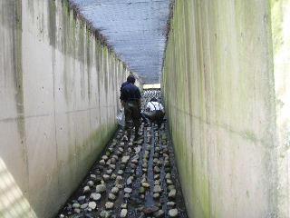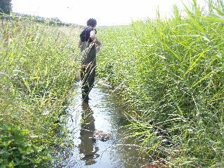 | 喜瀬川調査 H20年4月22日 本年度第1回目の調査を行いました。今回はスッポンとクサガメを発見、この川は調査するたびに新しい生き物を発見することができます。 |