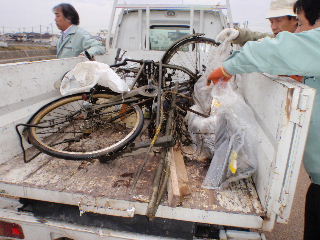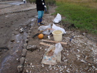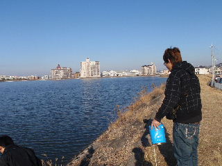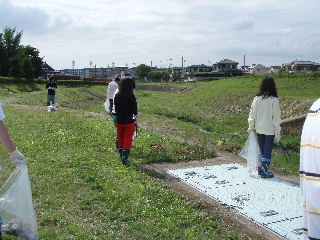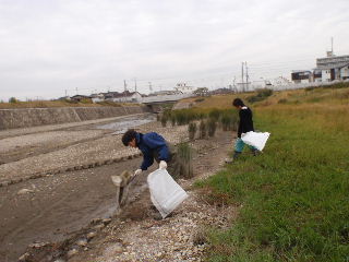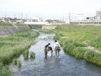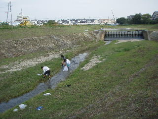 | 河川清掃と調査 7月8日 久しぶりに清掃活動を行いました。河川敷の草刈がされており、ゴミは案外少ない状態でした。 |