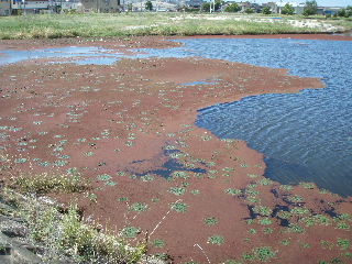 | 6月の調査 喜瀬川の河川時期も夏らしく草が多い茂ってきました。右の写真は高専の近くの公園内にあるため池です。 |