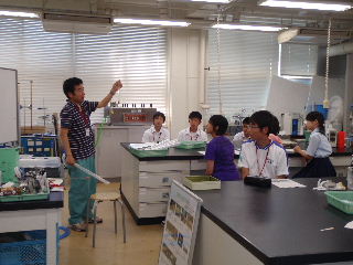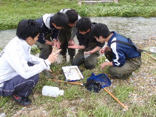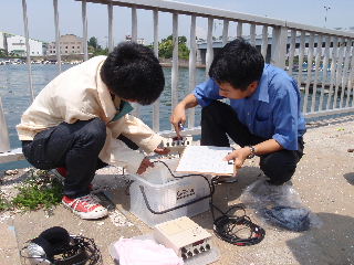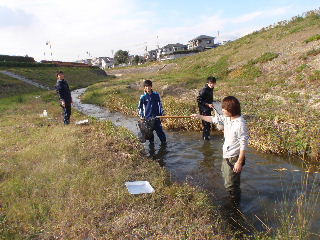 | 公開講座「身近な川を調べてみよう!」6月5日(土) 本講座は都市システム工学科の担当する中学生対象の公開講座の1つ「身近な川を調べていよう!」を6月5日(土)に実施しました。この講座では中学生の皆さんに「学んで、 作って、試す」ことを実践してもらうことで、身近な川の水環境についてより理解を深めてもらうことを目的としています。午前の部では、水環境に関する学習、透視度計の製作と水温、pH、CODの水質試験方法の練習を行いました。午後の部では近隣の川に出向き、午前中に学んだことを実際に体験しました。川では水質調査の他に生物調査を行い、必死で魚を追いかけ、長くつの中に水が入っても気にしていられない様子でした。天候にも恵まれ心地よい汗 をかきながら学習することができました。【渡部、大橋、池田、泉】 |