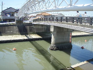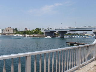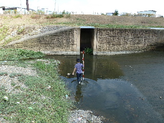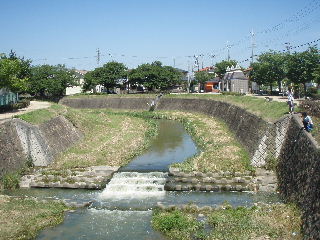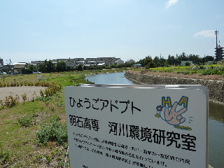 | 喜瀬川調査 6月25日 研究フィールドである喜瀬川の堰や護岸の状態を調べる調査を行いました。はじめからわかっていたことですが、市街地は車の移動に難ありでなかなか思うように調査が出来ないのが現状です、川の中を歩くのも難しそうですし。ともあれ今回は色々と良い収穫がありました。写真は河口から上流へ移動中のものです。 |