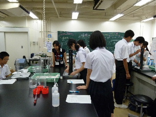 | オープンキャンパス 8月20-21日 今年のオープンキャンパスは例年になく気合いが入っているようで、本科では南極の氷が登場しまいた。私の担当する環境分野の体験学習は例年通りです。今年は2名の女子学生が頑張ってくれました。【ジョンイン、岸本さん】 |