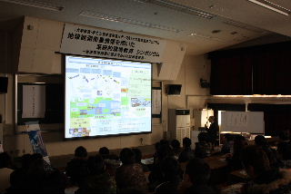 | 大学教育改革プログラム合同フォーラム 1月24日 東京秋葉原のアキバスクエアUDXにおいて「大学教育改革プログラ ム合同フォーラム」が開催されました。鍋島先生と「地球観測衛星情報を用いた系統的環境教育」プログラムのねらいや現状について説明しました。この場で多くの方に興味を持っていただき準備した資料はほとんどなくなりました。 |