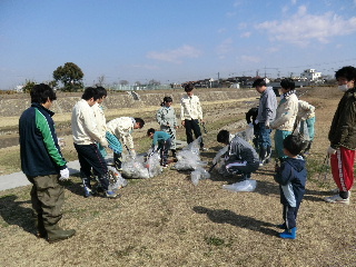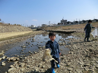| 喜瀬川清掃 3月19日 本年度最後の喜瀬川の清掃活動です。我が家の子供たちも手伝ってくれました。まだ、水遊びには早い時期でした。 |