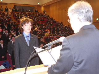 | 卒業式 3月20日 第45回卒業証書授与式および第14回専攻科修了証書授与式が挙行されました。今年は5年生の担任として名前を読み上げるという大きな使命がありました・・・案外落ち着いて出来ました。代表橋本君、かどでの言葉大西君、よかったよ!大西君は高専の土木学会の近藤賞を受賞しました。いろいろ頼みごとをして申し訳なかったけど・・・君ならできると思っていました。謝恩会では涙を見せなかった先生は悪い先生でした。いいわけではないけど3年間担任をした感動もたくさんあり号泣するには十分な思い出もあったのですが。大半の学生には関係ないですがおおきな”虚しさ”・・・も感じた一日でもあったので泣くに泣けませんでした。これからも人を信じて生きていきたいです。 5Cのみんな3年間本当にありがとう!!!もっといい担任になれるようこれからも頑張ります!! |