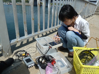 | テッポウエビ類パルス観測 5月13日(月) テッポウエビ類のパルス数の観測方法や水中音響の録音方法の確認作業を行いました。 |