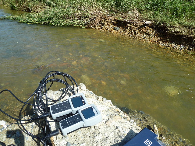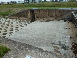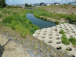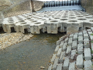 | 喜瀬川調査 10月22日 10月の降雨で、河道が変化していました。今年中に測量をしなければなりません。堰直下の水たたき部分のコンクリートブロックの大っ部分がむき出しになっていました。初めて調査した時は全て土に埋まって見えなかったのですが、このまま掘れていくのでしょうか? |
