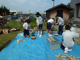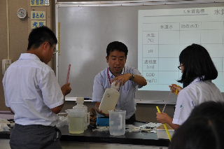 | トライやるウィーク 6月3日(月) 本年度よりトライやるウィークで受け入れる中学校が1校増えました。写真は神田研究室で行われている間伐材(竹)の有効利用の一環で研究している竹炭作りです、みんが竹炭で水質浄化の実験を行います。もう一つ水質分析は、8月に行う公開講座のための予備実験です。ここで得られた結果をもとに公開講座の内容を決定していきます。仕事を手伝ってくれた中学生のみなさん、ご協力ありがとうございました。 |