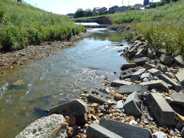 | 喜瀬川環境調査 6月17日(月) 週末にまとまった雨が降ったのですが、相変わらず川には水が流れていません。今年は底生生物の貝類に注目sた研究内容にする予定です。 |