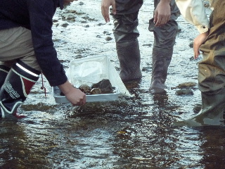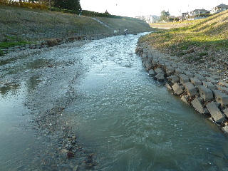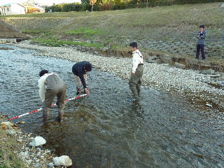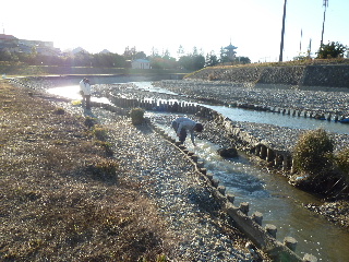 | 喜瀬川調査 11月14日 また河道の形状が変化、今回は水深の深い所が全て埋っていました。測量しておけばよかったです。相変わらず底生生物はおりません。 |