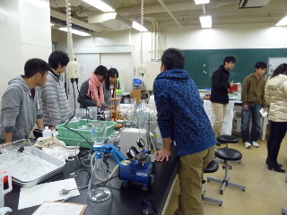 | 工学実験 4年生のプレ卒研が始まりました。衛生実験室は混みこみです・・・広くしてほしい。 | ||