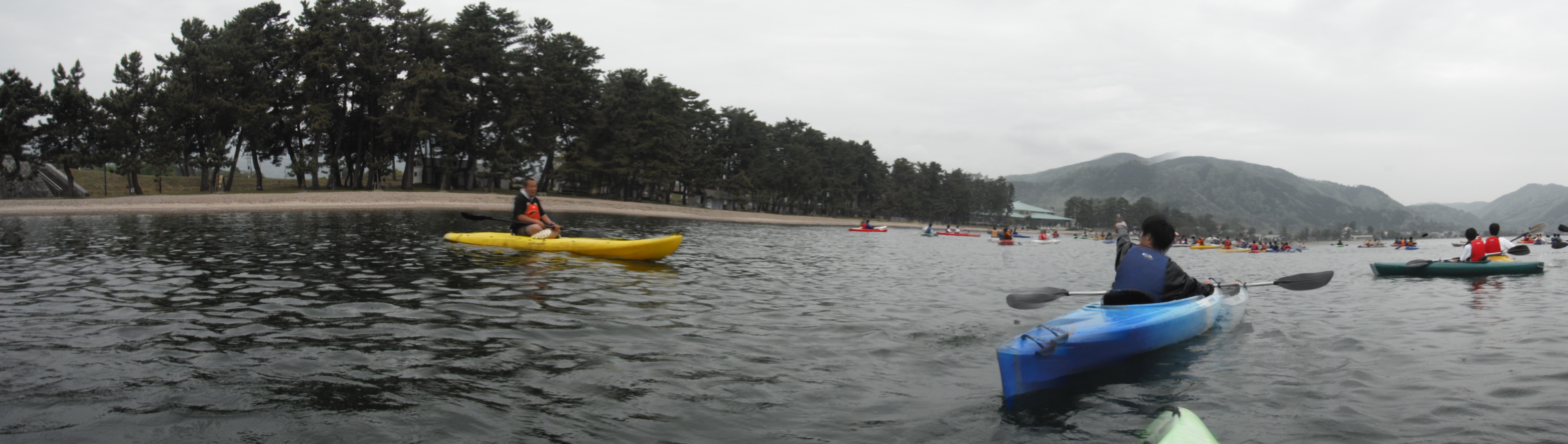 | 新入生合宿研修 4月27-28日 5連続での参加となります。生憎の空模様でしたが何とかカヤックはできました。 |
