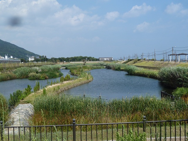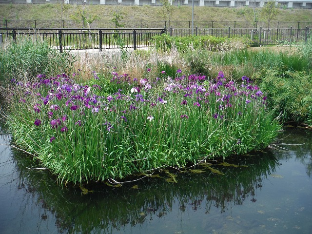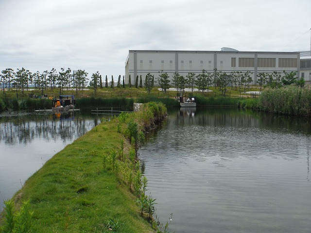 | 垂水処理場修景池の調査 5月11日(水) 神戸市の担当者の方が変わり、昨年度の報告を含めてご挨拶と調査を行いました。これまで意識していなかった問題がたくさん出てきて、これからよく考えて実験内容を考えていきます。 |