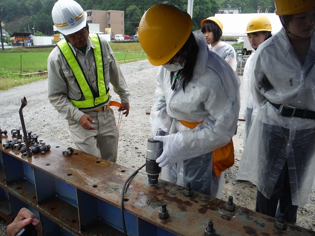 | 現場見学 6月9日(木) 工学実験Vの現場見学会を駒井ハルテック様のご協力を得て実施しました。当日は生憎の雨でしたが、今授業で学んでいないように関する見学会であったので、学習意欲の向上につながったと思います。詳しくは学科ブログに紹介されています。 |