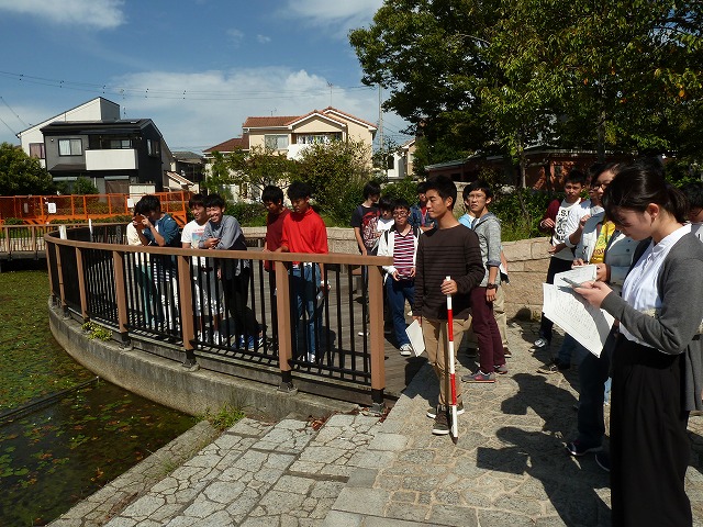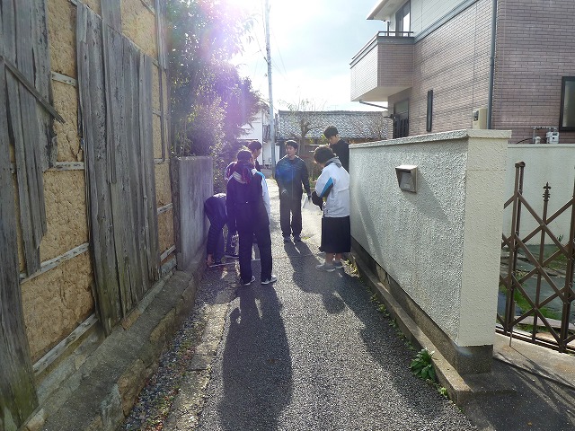 | 防災リテラシー防災街歩き 12月14日 1年生全クラスを対象とした防災リテラシー(担当太田先生、松野先生)の授業のお手伝いで、防災マップを作るための街歩きをしました。日常あまり考えない視点で街歩きをすると、いろいろな発見がありとても楽しかったです。 |
