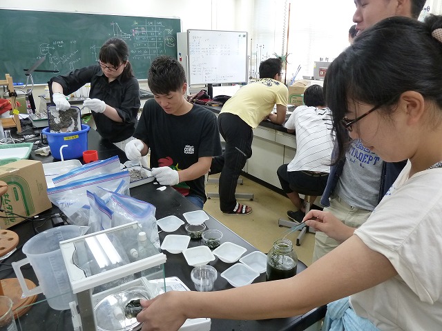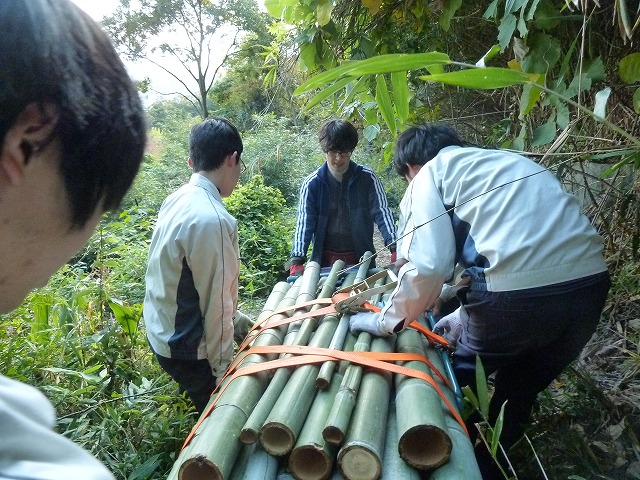 | 公開講座 竹炭を作ろ! 6月10日(土)、11日(日) Open lecture "let's make bamboo charcoal"/ June 10-11.2017 恒例の竹炭作りの公開講座です。今年は参加者が多く2日に分けての開催となりました。 It is an open lecture for junior high school students. Cut the bamboo, and break it, burn it, this activities is very hard. We had made TAKETOMBO while it was burning bamboo. |