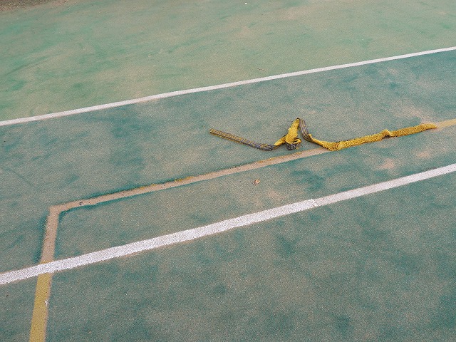 | テニスコート 10月19日 Tennis courts. Oct/19/2017 テニスコートがいたるところで痛んでいます The tennis court is deteriorating. |