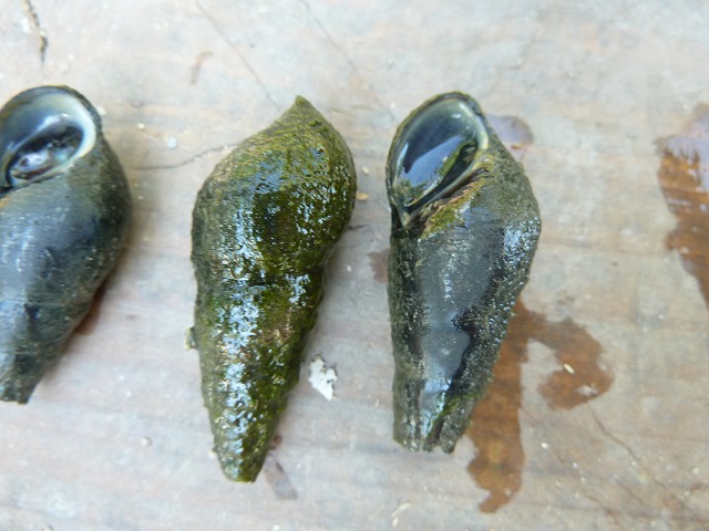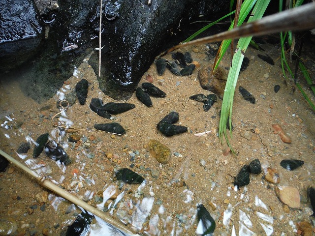 | 養田川調査 10月20日 Field observation at the river. Oct/20/2017 雨の中で調査を行いました。 we observed during raining. We found the place where a lot of snail(Kawanina) gathered. |