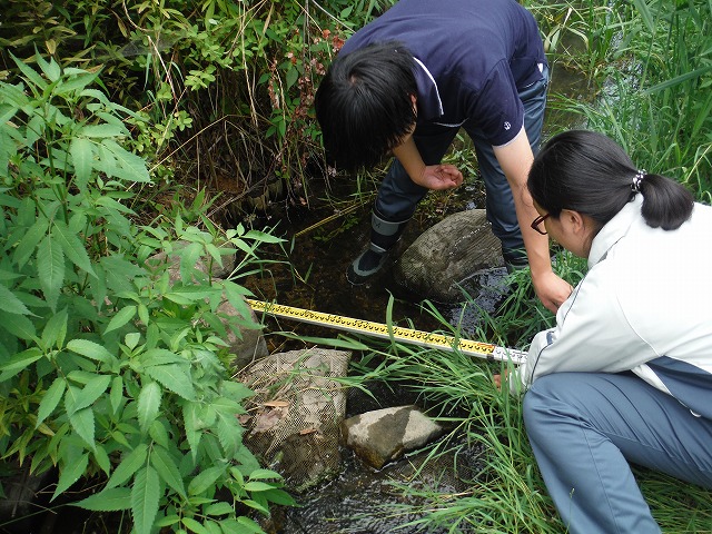 | 養田川調査 5月22日(月) Survey of river / May 22.2017 調査の準備、実施方法まだ手間がかかります。来月からは自分たちですべてできるようになっているはずです。 This theme is a research on effect of water purification using bamboo charcoal water purification material in a channel. We have been studying this theme from 2013. |