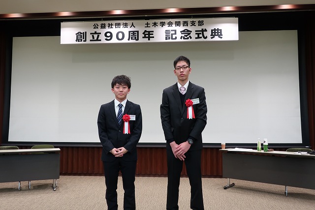 | 土木学会関西支部90周年記念式典 12月14日 Memorial ceremony of the 90 anniversary of Japan Society of Civil Engineering Kansai Branch Dec/14/2017 土木学会関西支部の90周年記念式典に2名の学生と参加しました。4年生の学生は、海外インターンシップの報告を行い、5年生の学生はフォトコンテストで審査員特別賞を受賞しました。 I attended the Memorial ceremony of 90 anniversary of JSCE Kansai Branch at construction Exchange Center in Osaka with two students. The 4th grade student reported his overseas internsihp, and the 5th grade student reacived the the judges special award in the photo contest. |