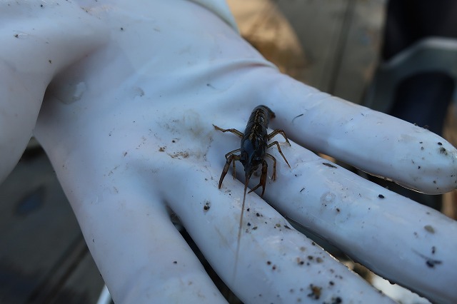 | 養田川調査 7月24日 Survey of river / July 24.2017 Recently it is very hot and humid. The filed survey is very hard. There were crayfish, Bivalvias (Corbicula leana), snails (Semisulcospira libertina) in the river. |