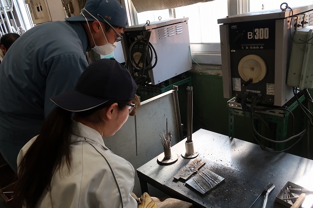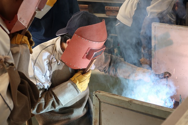 | 溶接実習 2月8日 An experiment of welding Feb/8/2018 今年から実施方法を少し変更しました。とてもうまくいったと自己満足しています。 An experiment of civil engineering 3 (4th grade) performed the welding experiment. Students divided into 4 groups at approximately 10 person, and each group spent 40 minutes for welding. Some students had worried the welding, but they were become smile face after the welding. I appreciate to technical staff of machine practice workshop. |