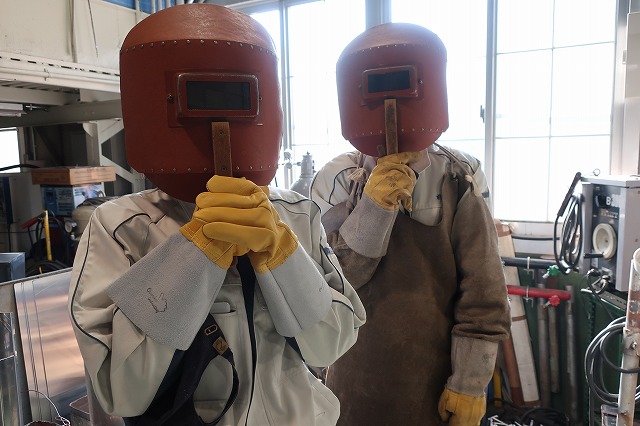 | 溶接実習の準備 12月11日 Preparation for experiment of welding. Dec/11/2017 溶接実験のテキスト作成のために、いろいろと準備をしました。 We prepared several things to make the text of welding, for example we checked the order of wearing protective clothes and the procedure of welding. |