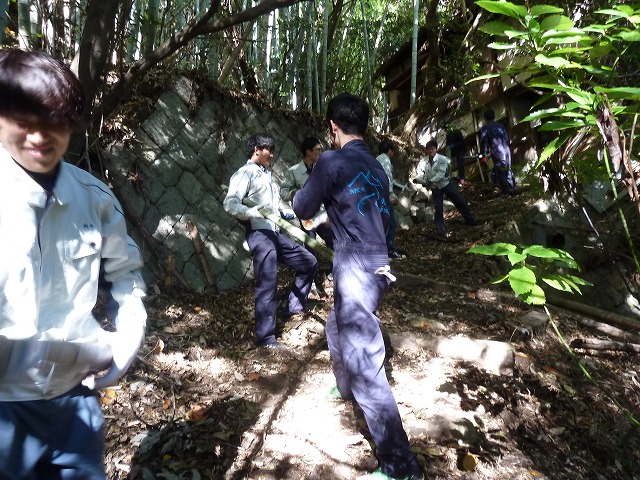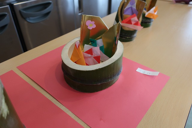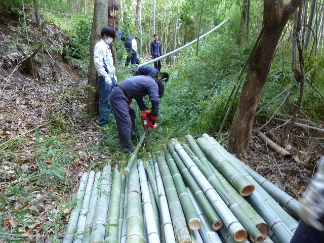 | 竹林の保全活動 3月3日(土) Conservation activities of the bamboo forest / March.2.2018 子供たちと山で竹を切り出し、福祉施設で入所者の方と雛飾りを作成するイベントをNPOと共同開催しました。 Our group and NPO co-organized an event. An event conducted conservation activities of cut down bamboos with children, and at the welfare facility, we made HIna Kazari with residents. |