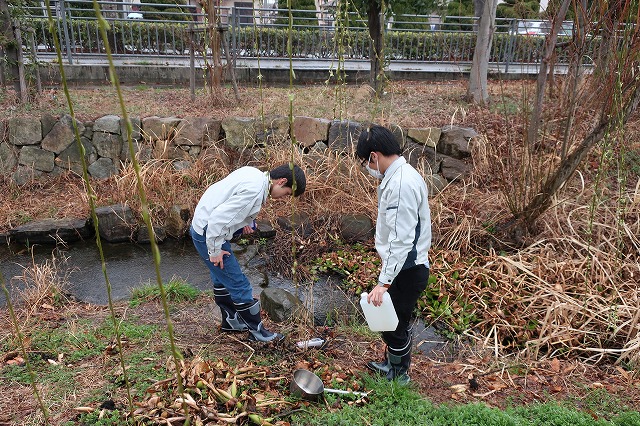 | 養田川調査 12月15日 Field observation at the stream in the park. Dec/15/2017 The regular observation. We conducted to simple topographical survey. |