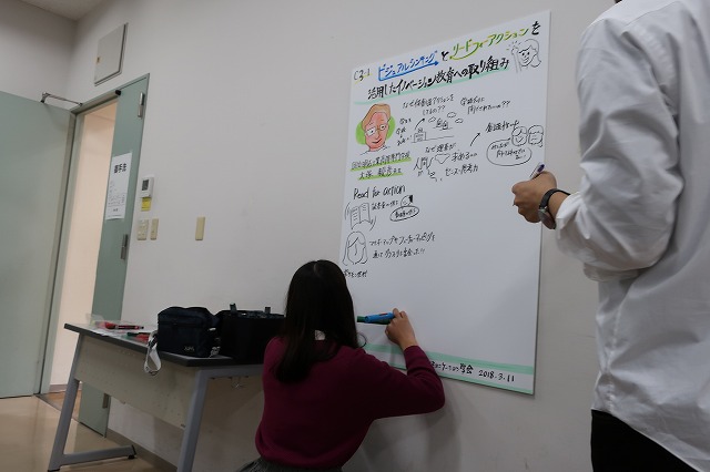 | 情報コミュニケーション学会 第15回全国大会 3月11日(日) Japan Association for Communication, Information and Society / March.11.2018 大手前大学さくら夙川キャンパスで開催された第15回情報コミュニケーション学会全国大会に共同研究者の発表があったので参加しました。発表の傍らグラフィックファシリテーションで発表内容が視覚化されていくという面白いスタイルでした。 I attended an annual meeting of Japan Association for Communication, Information and Society, as co-author. |