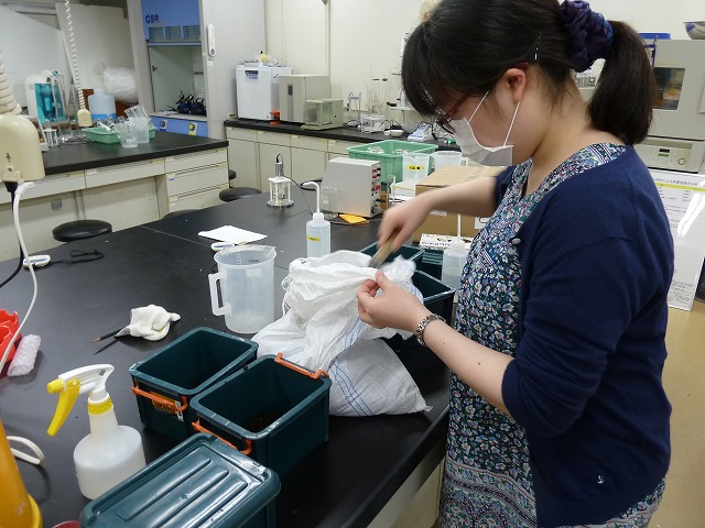 | 養田川調査 9月25日 Field observation at the river. Sep/25/2017 夏季休業中で人数の減った学生の代わりに調査実験にフル稼働です。 I have many students this year, and I feel the laboratory is narrow. I am worried that my task. |