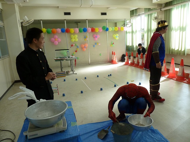 | 教養行事と高専祭の準備 11月10日 A musical event and preparing of school festival Nov/10/2017 教養行事で「罪と罰(劇団うりんこ)」を鑑賞、定期的にこういう機会があると日ごろとは異なる感性を磨くことができて非常に良いと感じています。そして学校に帰ってからは11日〜12日の高専祭に向けてクラス展示の準備です。 An exhibition of our class is the theme of "festival + civil". A lot of kids had enjoyed our games such as bowling, measuring sand weight etc. |
