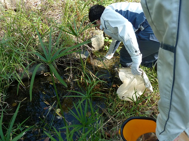 | 垂水修景池 9月11日 Field observation at a scenic pond. Sep/11/2017 It's regular observation at the pond at onece per 2 month.the experiments of laboratory are busy. |