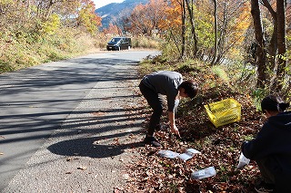 | 土壌に残留する融雪剤凍結防止剤等の調査 11月23~24日 土壌に散布する化学物質による土壌生物シマミミズに対する影響に関する研究の一環の調査です。実際の積雪地域の土壌にどの程度の残留濃度があるのか、兵庫県県北部と高専周辺で調べます。 |