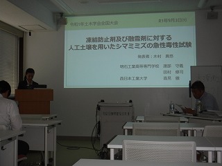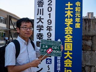 | 土木学会全国大会 9月3日(火) 愛媛県の香川大学で開催された土木学会全国大会に参加してきました。最近の学生さんは、上手に発表できるので安心です。真ん中の写真は土木学会facebookの”「いいね!土木」どれが好き?”にUPされたものです。記念にシールをもらいました。市内の移動には多分市営のレンタサイクルを利用。市内道路は自転車レーンが整備されていて快適に移動することができました。 |