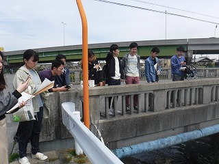 | 水工システムT 4月17日(水) 専攻科2年生の授業で、本校最寄りの川の見学をしました。見学と言っても解説はほとんどせず先入観なしで川の様子を観察してもらい、授業を通じて理解を深めてもらえたらと計画しています。 |