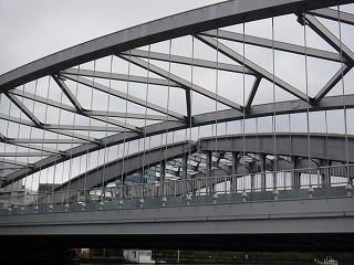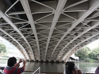 | 八百八橋の船上見学 10月19日(土) 土木学会関西支部「ぶら・土木28 舟でめぐる なにわ八百八橋 〜橋のウラ側 魅せます〜」を開催しました。水都・大阪の八百八橋めぐりをめぐる3回名の企画で、今回は、橋の専門家と舟に乗って大川、東横堀川、道頓堀川の橋を巡りました。橋のデザイン、建設の経緯などと合わせ大阪の歴史・文化と橋との密接な関係を聞くことができまた。 この企画は午後でしたので、午前は池田市で開催された第9回マンホールサミットに参加しました。マイナーなイベントなのかと甘く見ていました・・・受付で1時間、カード配布で30分並ぶなどイベントを堪能することなく、会場を後にしぶら土木へ移動するはめに。 |