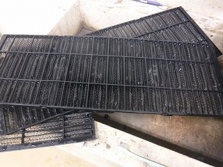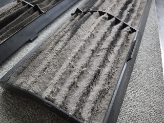 | エアコンフィルター 12月7日(土) 咳き込むことが多くなるこの時期、生活習慣に気を付けるとともに、長く滞在する研究室の環境を良くしようと、数年ぶりにフィルターを点検してみました。気付かなければよかったと思えるほどの汚れ具合に愕然、掃除機、ブラシ、水洗いできれいになりました。これで数年もつでしょう? |