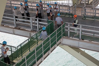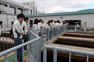 | 工学実験V 浄水場見学 11月26日(火) 11月26日に明石川浄水場の見学に行ってきました。都市システム工学科4年生は、「衛生工学」で上下水道の講義、「工学実験V」で水質分析実験をしており、これらの学習内容への理解を深めるための見学です。 施設担当者から、浄水場の概要、処理方法や災害時対策等についての説明を受けながら、施設見学をしました。講義+実験+現場がうまく連携し、学生の理解、何より興味を高めることができました。業務の中ご対応頂きました施設管理者の皆様に御礼申し上げます。 |