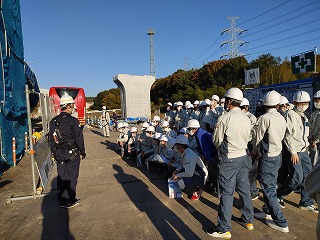 | 現場見学4C 11月18日(金) 都市システム工学科4年生が東播磨道北工区の工事現場見学を行いました。1か所目の八幡三木ランプ整備工事現場で工事概要、現場でのi-constructionの取組みの説明後、ドローンで記念撮影を行いました。2か所目は室山高架橋上部工事現場で兵庫県のi-constructionの取組み、張り出し架設工法について学びました。現場に設置されたエレベーターで高架橋上部までのぼり説明を受けるという貴重な体験をさせて頂きました。3箇所目は国道175号AB-2・Cランプ橋上部工事について説明を受けました。コロナ禍で過ごしてきた学生の初めての現場見学となり、多くのことを学び学習意欲も高まってくれたと思います。見学にあたり兵庫県並、前川建設、ピーエス三菱・コーアツ工業JV、横河NSエンジニアリングの皆さまに感謝申し上げます。引率教員にとっても、現場で卒業生の活躍を見る良い機会でした。 |