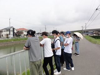 | 水工システムT 瀬戸川 6月20日(月) 河川構造物の機能と役割、多自然川づくりを学んだ上で、4月に踏査との比較のため再び瀬戸川を見学しました。違いは堰が起立し止水域が形成されている、植生が繁茂している等などの違いの他に、講義で得た知識を踏まえて観察してくれたものだと信じています。 |
