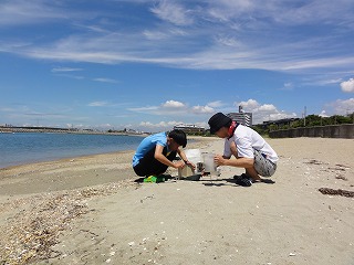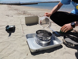 | 海岸におけるプラスチック調査 7月27日 夏休みまでに1回はしておきたいと、猛暑の中調査を実施。日差しは強かったのですが、風があり気持ちよかったです。 |