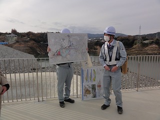 | 安威川ダム視察 12月7日(水) 「安威川ダムの自然環境保全対策等に関する懇話会」の現地視察に参加しました。堤体が完成し9月から試験湛水を開始し、現時点で常時満水を越えた状態です。ダムのスケール感には圧倒されるばかりですが、今回は環境保全メインとうことで、動植物の保全に関わる対策を中心に視察を行いました。各分野の専門家が集まっており、多くのことを教わることが出来ました。オンラインが便利に使えてもやはり現場、対面は重要です。 |