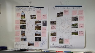 | 水工システムT 瀬戸川 4月19日、26日(火) 専攻科の水工システムTで本校最寄りの瀬戸川の踏査を行いました。グループに分かれアナログ方式で踏査のまとめを行いました。PCでまとめることも出来ますが、アナログ(手作業)の方が様々な観点から効果が高いように感じました。 |