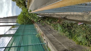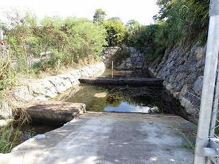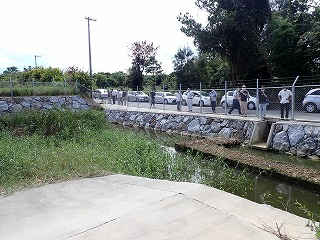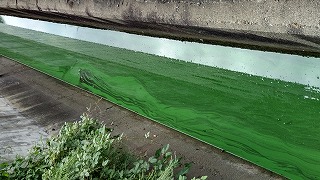 | グラウンド横の水路 グラウンド横の水路で、アオコが発生していました。 |