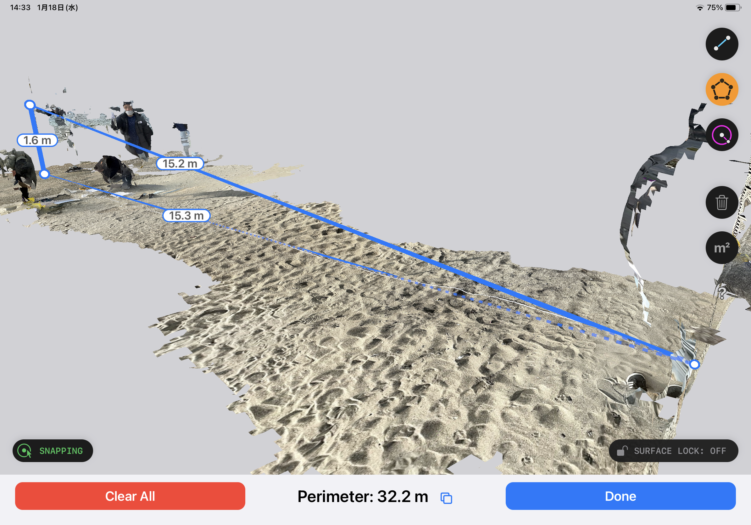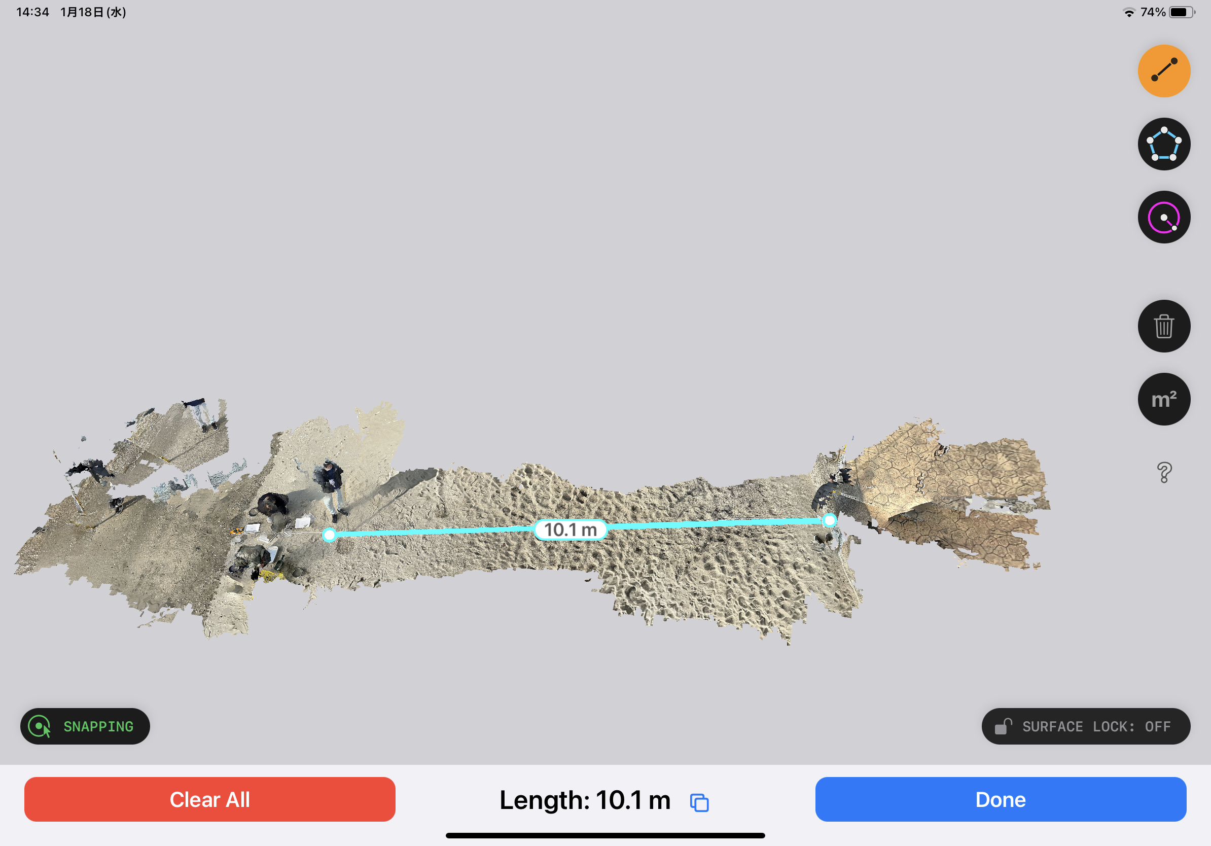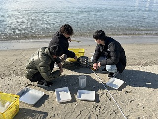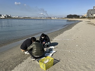 | 海岸プラスチック調査 1月18日(水) 本年度再度のプラスチック調査を実施しました。調査地点の位置や勾配はLIDAR scannerを使っての把握、測定を試みました。 |