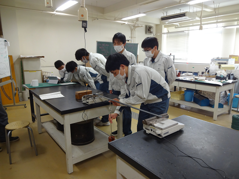 授業風景 構造物の支点に生ずる力の計測実験
