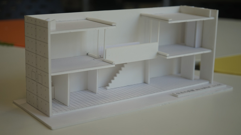 これは、建築模型の材料としてよく使われるスチレンボードを使って、世界的に有名な建築家である安藤忠雄さんが設計した「住吉の長屋」を1/50スケールで制作するというものです。